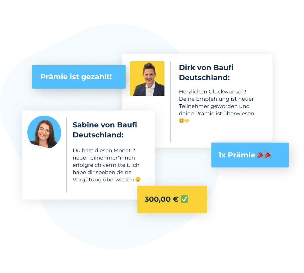 - 4. Wenn wir so einen neuen Teilnehmer gewinnen, erhältst du von uns 300,00 € für deine Empfehlung.